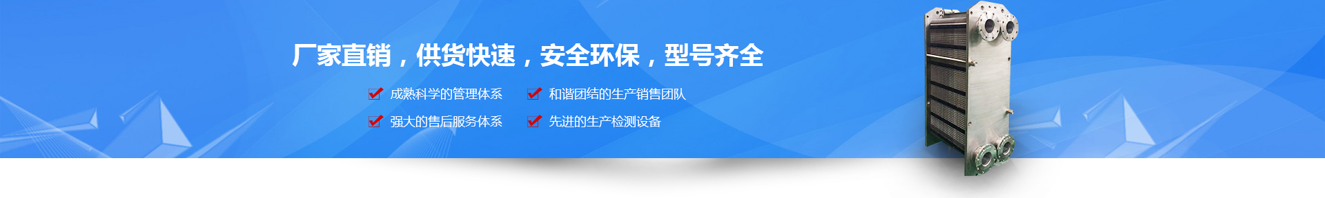 我們是一家專(zhuān)業(yè)從事板式換熱器新品研制、模具開(kāi)發(fā)、應(yīng)用設(shè)計(jì)、生產(chǎn)制造、銷(xiāo)售服務(wù)的綜合性生產(chǎn)型企業(yè)。所生產(chǎn)的釬焊式板式換熱器與可拆開(kāi)式板式換熱器產(chǎn)品可廣泛應(yīng)用于冶金、食品、輕工、化工、制冷與暖通等領(lǐng)域 。